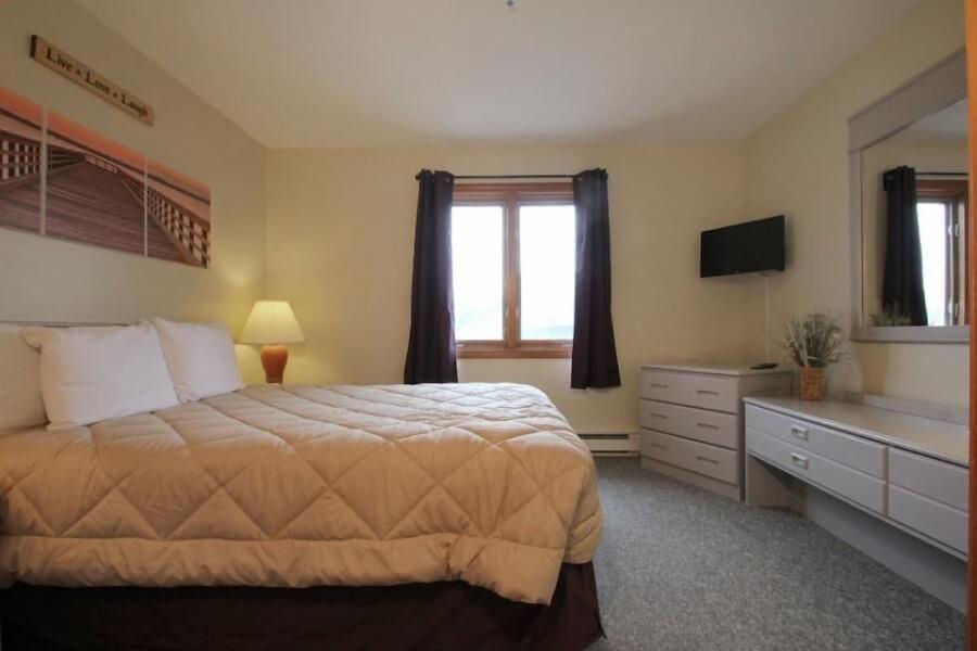This one bedroom unit has 1 queen in the bedroom, and a sleeper sofa and twin murphy bed in the living room area. Unit comes equipped with kitchenette, including refrigerator and apartment sized stove/oven. Color Cable TV and DVD. Shower stall in bath. This unit has a private balcony. Air Conditioned.